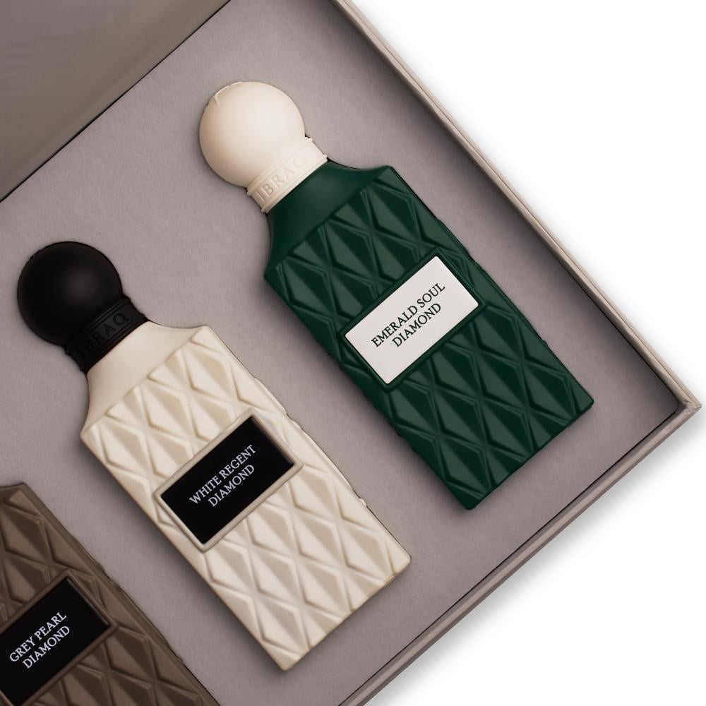 تضم المجموعة ألواناً مثل الأبيض الملكي بنقائه الراقي، والزمرد بدفئه الآسر، والرمادي بغموضه الساحر. تجربة متكاملة تجسد صفاء الحواس وتضفي حضوراً من الرقيّ لا يزول مع مرور الزمن.